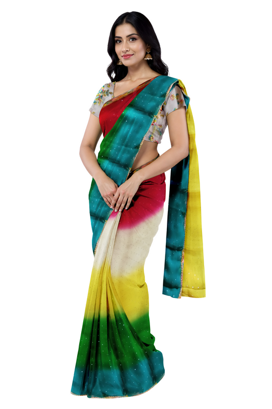 Women's Zigzag Pattern Georgette Saree | Indian Ethnic Festive Saree | Lightweight Party Saree with Black Unstitched Blouse Piece | Saree with Sparkle Detailing