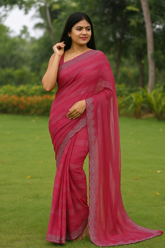 Elegant Net Saree with Geometric Pattern & Subtle Border – Lightweight & Comfortable Saree for Women | Perfect for Festive, Wedding, Traditional & Casual Wear