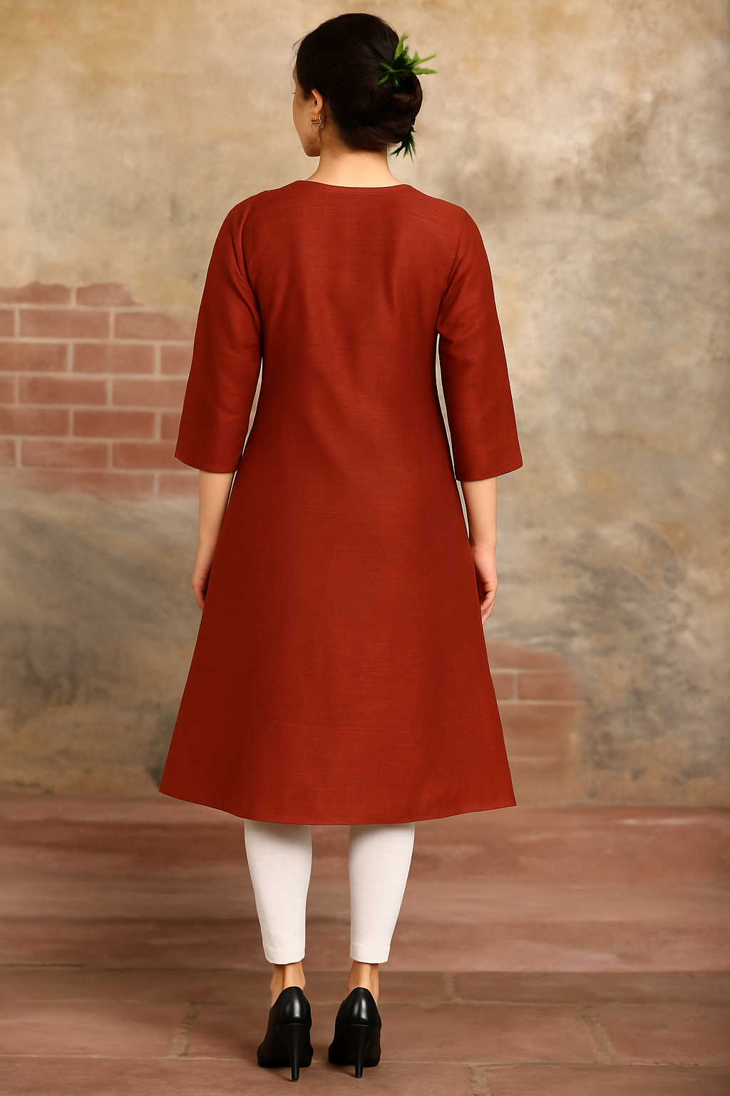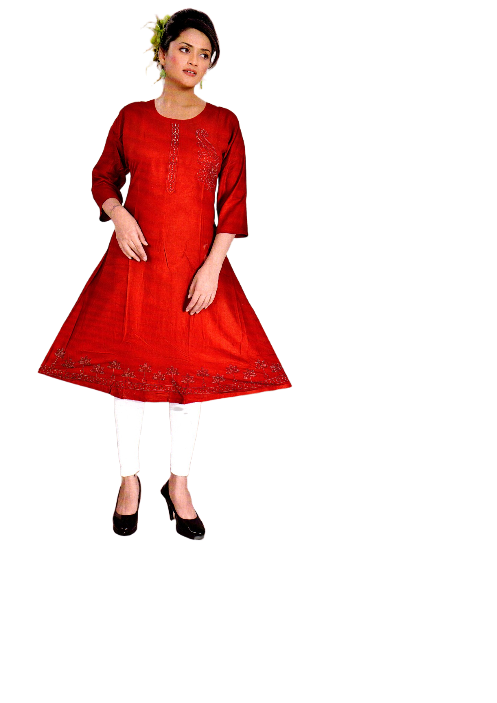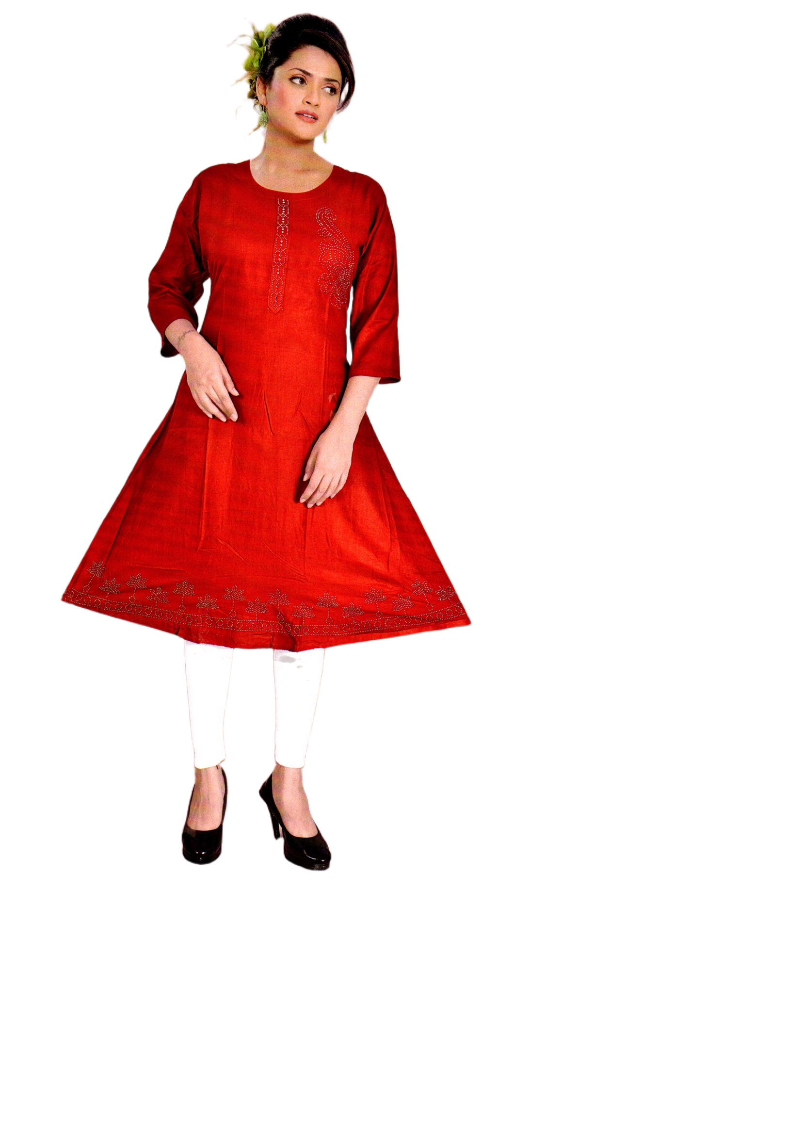 - Elegant Embellished Pattern: This kurti features a beautifully embellished design, adding a sophisticated touch that makes it perfect for both daily wear and special occasions, allowing you to look effortlessly stylish while feeling comfortable.