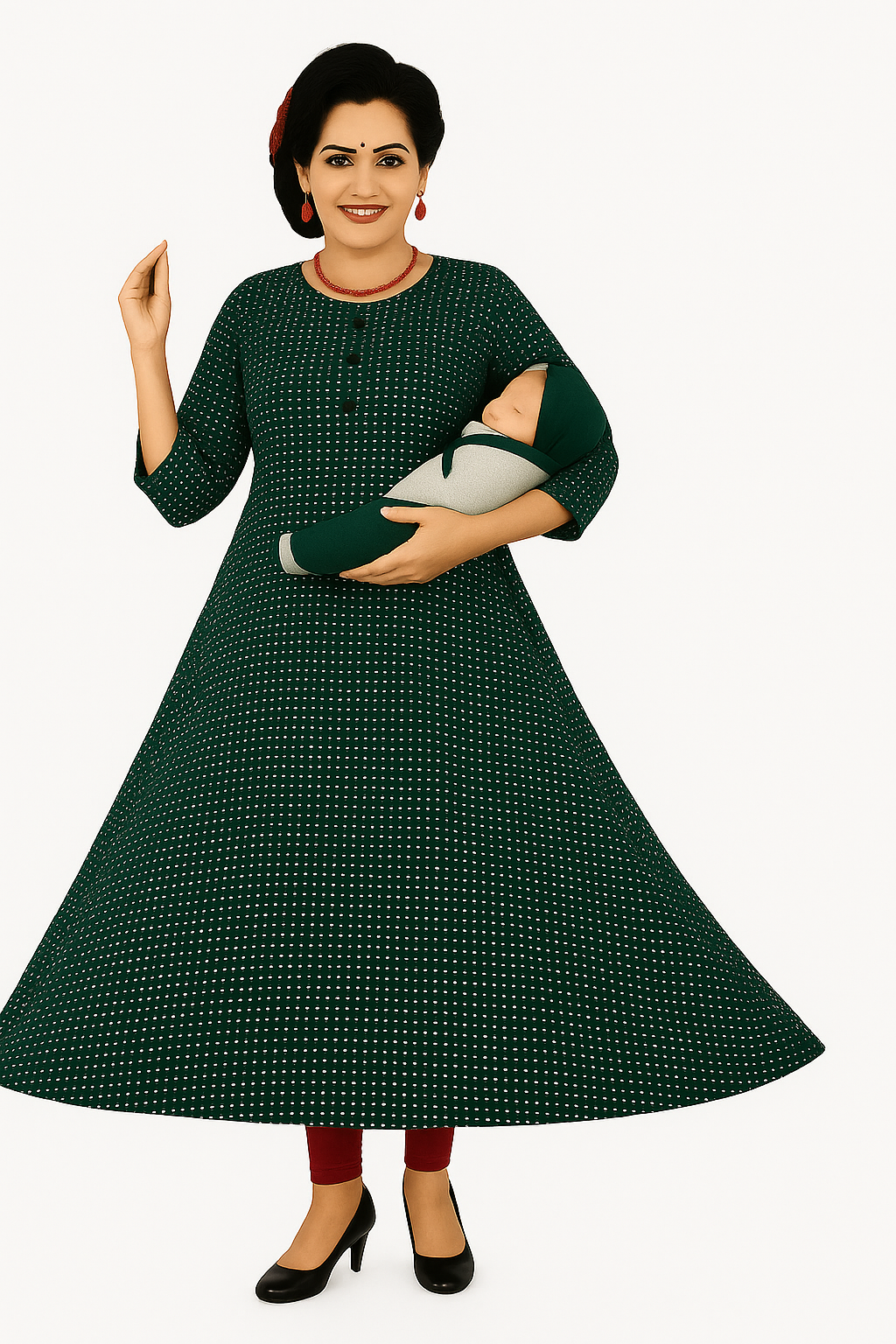 - Discreet Breastfeeding Access: This maternity kurta features concealed vertical zippers on both sides of the bust, providing a discreet and convenient way to breastfeed your baby without having to compromise on style or privacy.